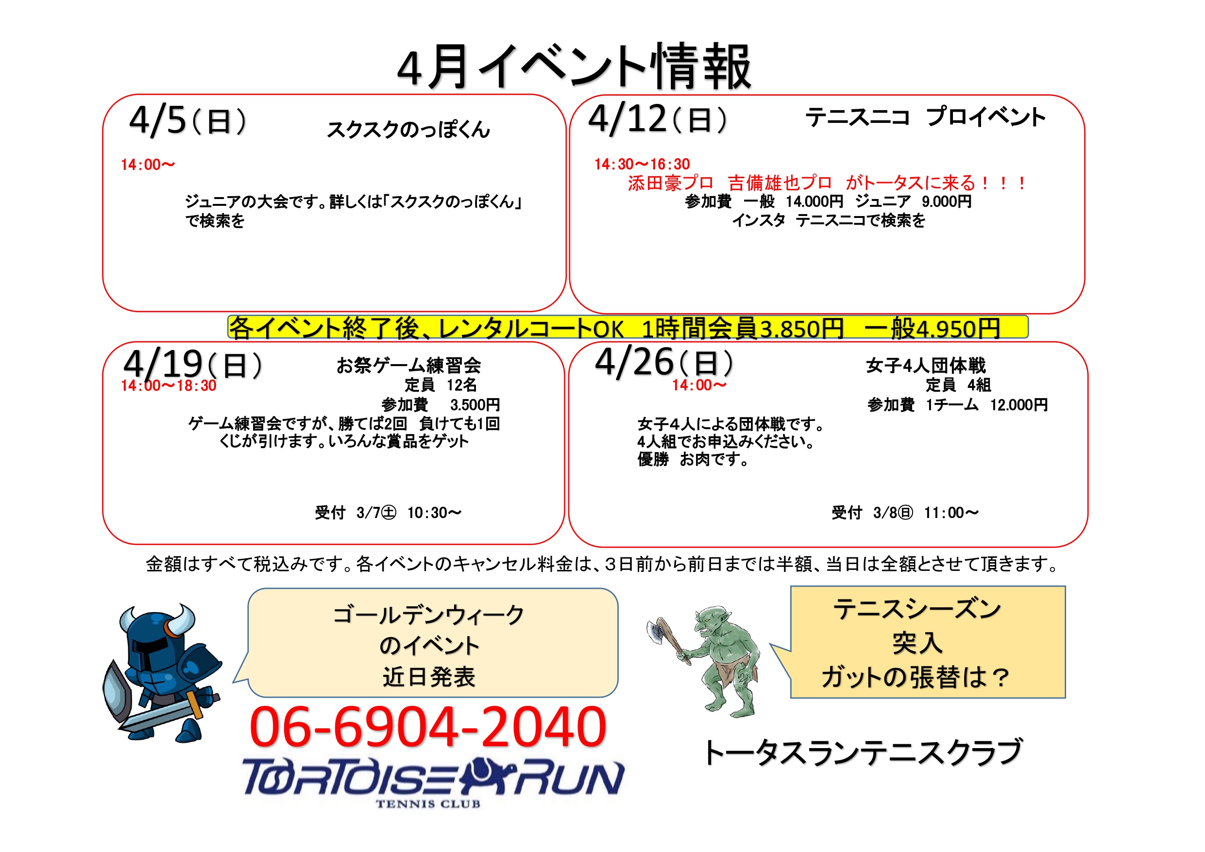 大阪府守口市にインドアコートを構えるテニススクール「トータスランテニスクラブ」では、